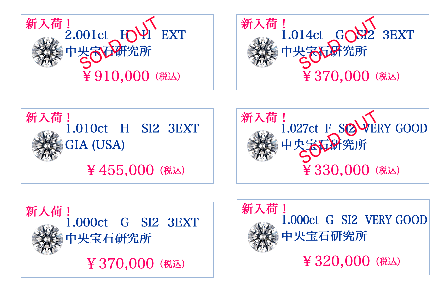 1カラット以上のダイヤモンドはこちらをご覧ください。