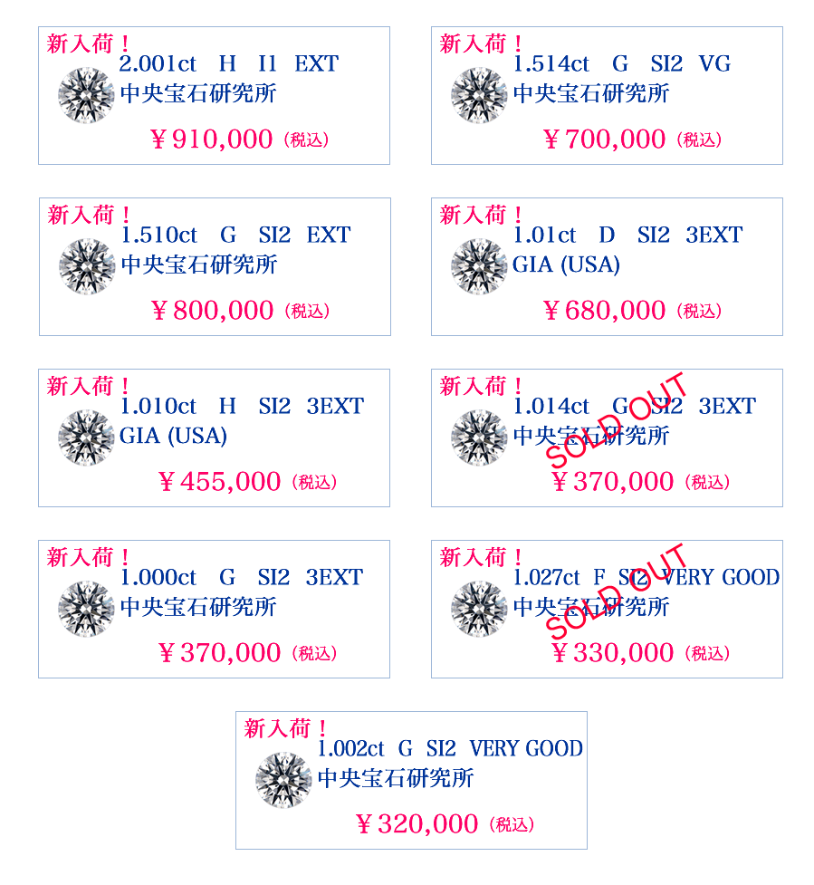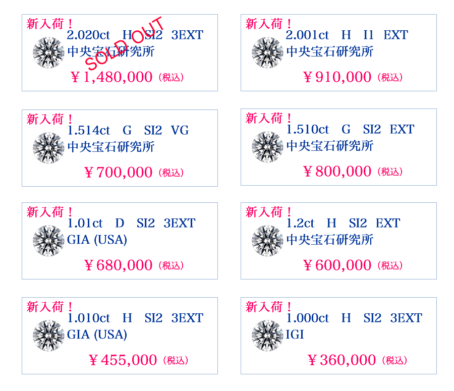 1カラット以上のダイヤモンドはこちらをご覧ください。